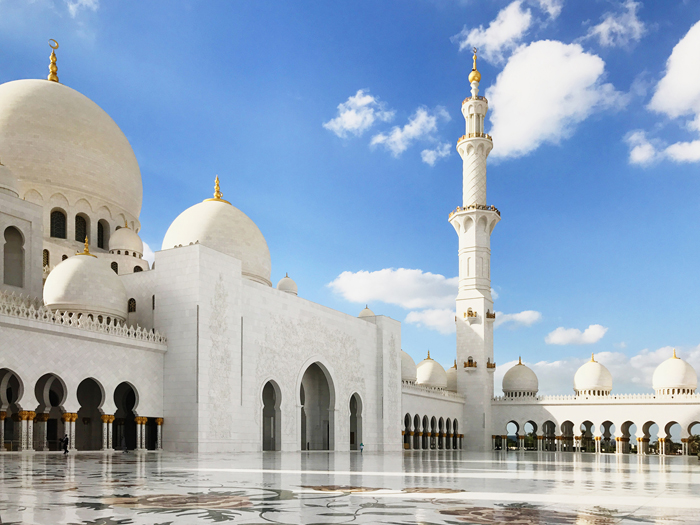 阿布扎比梦幻白色大清真寺坐落于阿联酋首都阿布扎比市,它位于首都阿布扎比的两座桥梁之间:既穆萨法大桥和马格达大桥。是阿联酋的标志性建筑。该清真寺建于1998年,至2009年基本完成,是世界三大清真寺之一。作为全世界最大的清真寺之一,阿布扎比大清真寺能一次性容纳多达四万穆斯林做礼拜。