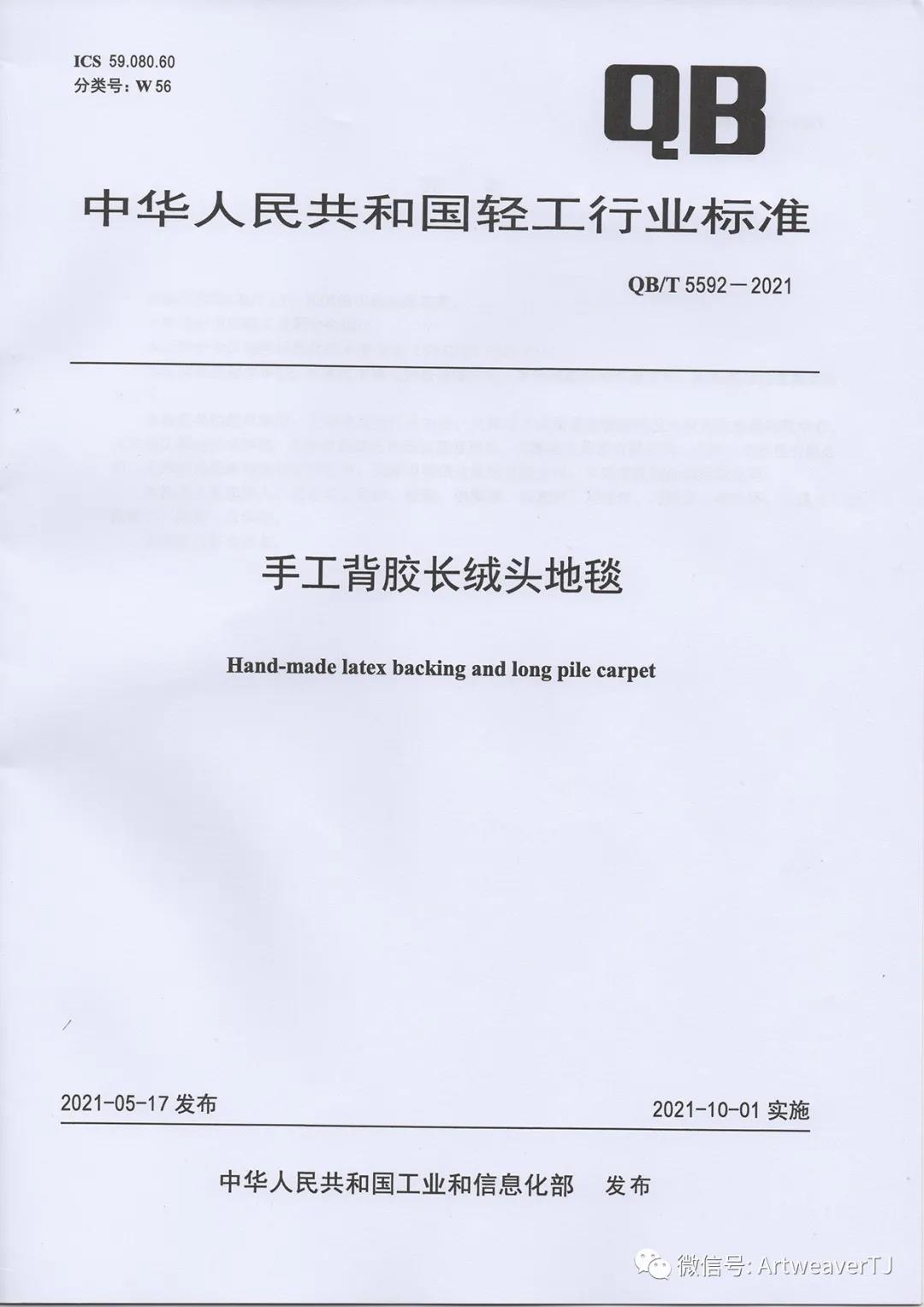 由雅文公司负责起草的行业标准——《手工背胶长绒头地毯标准》——于2021年10月正式实施。此产品为雅文地毯经营的主要地毯品质之一,我们十分了解地毯生产各个环节的关键点,拥有丰富的质检经验,为标准内容的起草奠定坚实基础,此行业标准的发布填补了该类地毯标准的空白。