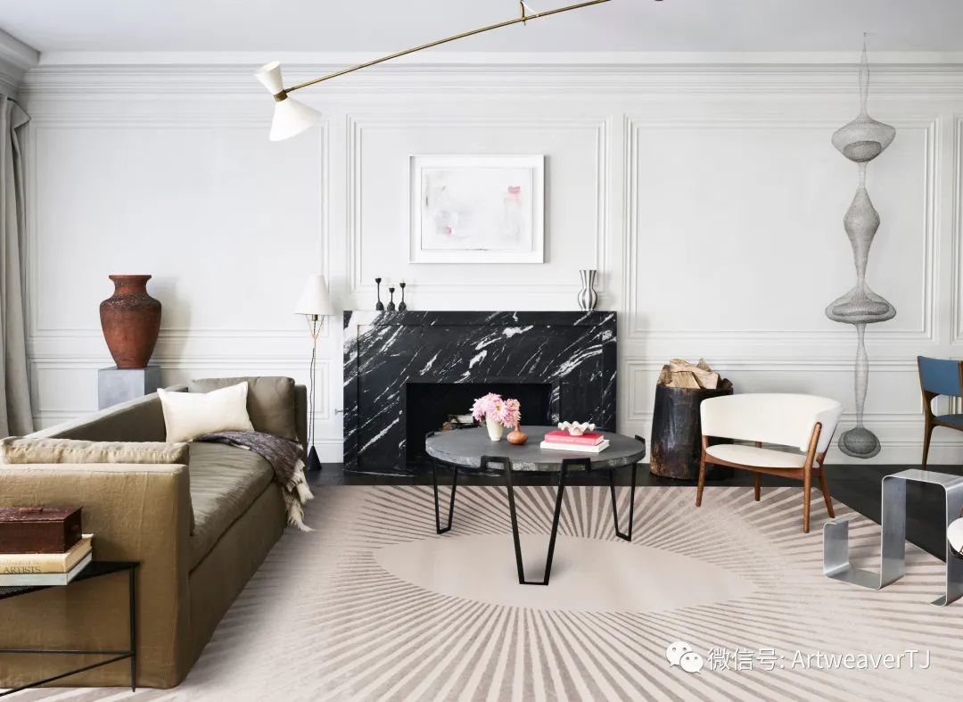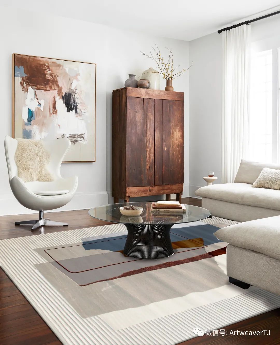 在搭配方面,需要根据设计风格来搭配地毯。例如:新中式风格,选择一幅水墨画图案的地毯,渲染浓浓的古典艺术气息!