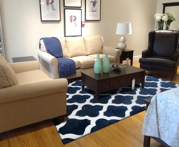 除了告诉你地毯图案花色有什么样的,再就是尺寸的大小了。简单说两句地毯买大不买小,不要总说太大了会放不下的,于是选的地毯小到和你茶几分不出来。