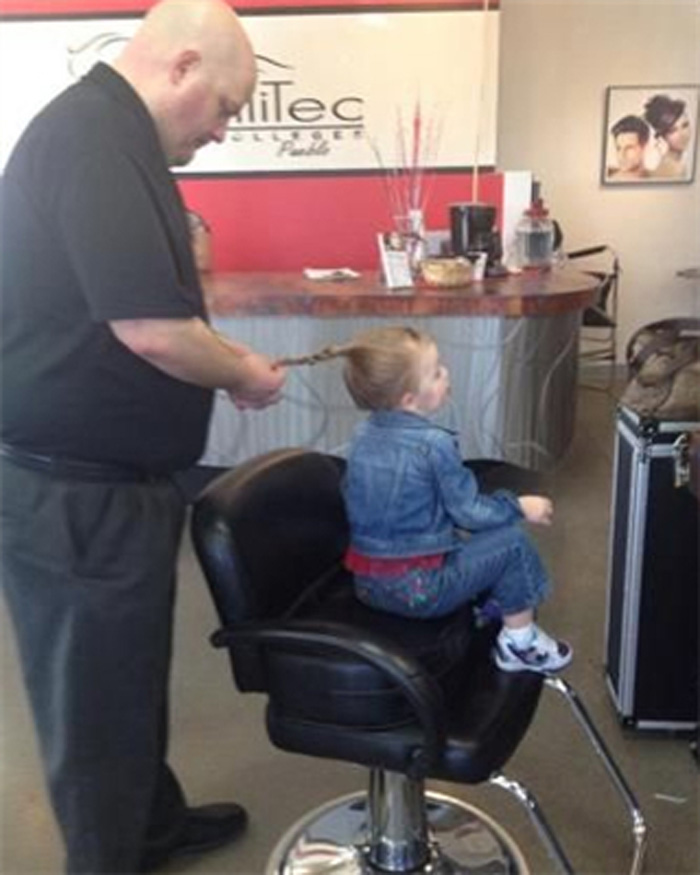 我的老爸手很大,但是却可以编细细的头发,让我做最漂亮的小公主