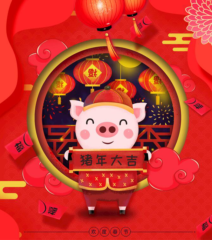 未来的时间里面,祝大家猪(诸)事顺利,大吉大利!