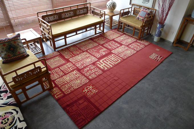印章是一门历史悠久的传统艺术。“印者,信也”,是信誉的标记。中国印同诗、书、画被誉为中华民族文化的“四绝”、”四全”,是中国文人墨客追求的最高的艺术境界。本作品将“中国印”元素运用于地毯设计,是对中华传统文化