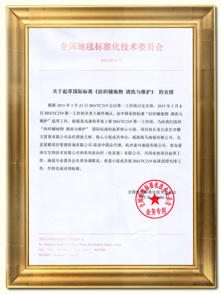 3月,公司参加在上海举行的国际标准化组织铺地物技术委员会(ISO/TC219)会议。... [阅读更多]